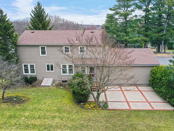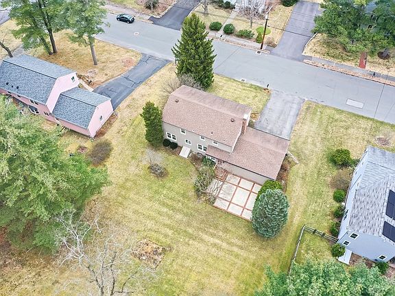 Lovely, bright Colonial-style home along an inviting cul de sac in North Framingham. A short drive to downtown Sudbury’s specialty shops and grocers. A short walk to the magical Garden in the Woods! Restored original hardwood floors on main level and four bedrooms upstairs. Light-filled, updated kitchen with quartz counters, pantry, stainless steel appliances. Cozy den has newer hardwood floor and wood-burning fireplace. Convenient mud & laundry room connect to attached 2-car garage, ½ bath and backyard. Large primary suite has walk-in closet & updated full bath with tile. Updated second full bath and large linen closet off upstairs hallway. Clean, unfinished basement holds potential for additional living area. Custom concrete and brick patio with views to the private half-acre lot of lawn, beautiful mature trees and perennial garden beds. (Updates: 2 full baths in 2017, architectural roof & front porch in 2016, driveway, bulkhead, oil tank & heating system in 2015 & more.)