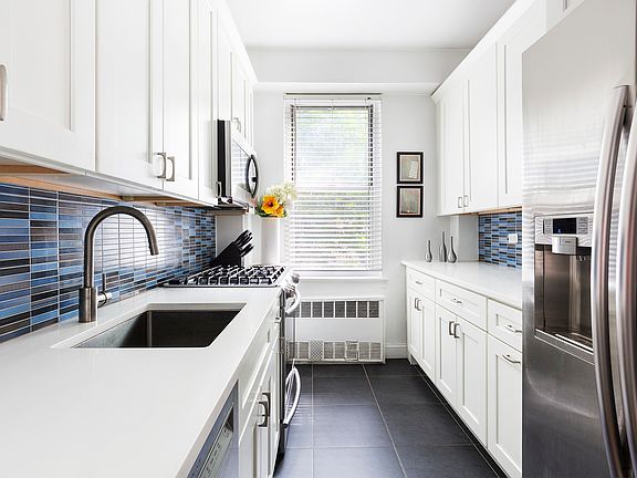 Showings & Open Houses BY APPOINTMENT ONLY. Residence 1D at 66 Overlook Terrace is sexy, sleek, stunning and bathed in southern sun! This loft-like one bedroom sits one flight up making it feel like a true second floor home with privacy. Serene leafy green views from every window create a lush, beautiful backdrop for this gut-renovated home. The open living space is versatile with a windowed alcove for separate dining or office; 9 ft ceilings add to the expansive feel. The gorgeous, renovated kitchen features quartz counters with mosaic tile back splash by Porcelanosa, white shaker-style cabinetry, stainless extra-deep sink, Bosch dishwasher, Samsung range and refrigerator and porcelain tile floors. The bathroom is also done perfectly with Kohler pedestal sink, over-sized recessed medicine cabinet, deep soaking tub surrounded by white subway tile and porcelain floors. The generous bedroom enjoys two exposures and a large double closet (five total in the apartment). This special home has been meticulously renovated from top to bottom with skim-coated walls, upgraded electric, new baseboard moldings and restored parquet floors with a fresh matte finish. Quietly situated in a well-run Co-op in Hudson Heights with very low maintenance fees, this building features a part-time Doorman, resident Super, exercise room, on-site parking garage, outdoor playground and sitting garden, bike and private storage, package room and central laundry. Cats are permitted, but not dogs. Located near glorious Ft. Tryon Park, the Cloisters, a charming shopping district and terrific restaurants. Just 20 minutes to midtown on the A express with easy access to the 1 train and M4 and M98 bus lines. Don't miss out on this one; it's quite the stunner!