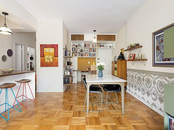This is the one you've been waiting for - a sunny, renovated, 2-bedroom home with high ceilings, an open floor plan and tons of storage. This high 2nd floor home (it feels more like the 6th floor!) offers southern and eastern exposures, 9.5 foot ceilings, a sunny living room with through-wall A/C, a master bedroom with huge walk-in closet, a 2nd bedroom with 2 exposures, an open kitchen with breakfast bar, a terrific home office with built-in bookshelves and storage, and 3 additional large closets. All this in a well-run co-op with live-in Superintendent, part-time Doorman, central laundry, fully equipped gym, playground, bike room, and storage lockers. Hudson Heights is a charming neighborhood, close to Bennett Park, Fort Tryon Park, a myriad of transportation options (20 minutes to midtown on the A train) and easy access to the GW Bridge. ($43/month assess. thru 6/19.) Sorry, no dogs, but cats are welcome. Move right in!