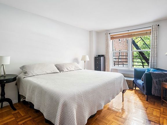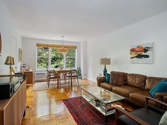 A rare Junior 4 in one of Hudson Heights' best buildings with plenty of room, fully remodeled with top of the line finishes! Apartment Description: The apartment is located on the 3rd floor, which due to the unique terrain upon which the building sits, allows this unit to feature the convenience of an entrance on the same floor, while giving this unit beautiful open views 3 floors above the street. The unit's well thought out layout creates a very homey feel by spreading out the various rooms. You enter the apartment into a generous foyer which can be utilized as a library, eating nook, or workspace, which features both an extra deep coat closet great for storing out of season clothing, as well as a wide custom closet great for all those purchases from Costco. The Foyer opens to the Living/Dining Room with verdant views through the extra wide picture windows out to the trees across the street over the building garden. The spacious 18' by 12' flexible space easily accommodates a comfortable seating area as well as a full size dining room set. The kitchen, accessed from the Foyer was redone top to bottom, featuring Granite countertops and stainless steel appliances. Enjoy entertaining and then throwing everything in your own GE ultra efficient and ultra quiet Dishwasher. The full featured GE Gas Range, Oven and Microwave allow for easy cooking options, and the counter depth Blomberg fridge is both stylish and efficient. Kitchen also features it's own window (all windows in the apartment feature custom cut wood blinds), plenty of cabinets, pull out drawers, spice drawers, and a small desk/workspace. Entered through the Kitchen or Living Room is the Junior Bedroom. While small, the room features windows in two directions and a chandelier. The room can fit a bed and dresser, or two cribs, being a great option for a guest room or a children's room. It can also be a flex room for an office, eating space, play area, library, or many other utilitarian purposes. Off to the side of the foyer is the full bathroom, which is perfectly located for guests to access away from the entertaining space without invading your personal space, while also being adjacent to the Master Bedroom for your personal convenience. The bathroom has also been fully modernized from top to bottom. The sink features a granite counter top and ample storage space. The Bathtub features efficient rainforest shower-head, glass doors, window and ledge for bath accessories. Finally, the spacious Master Bedroom at the end of the foyer features double wide windows, and plenty of space for a king bedroom set with room for a seating area. Most unique is the rare walk in master closet, which can be customized to best organize your fashion wear. New photos soon coming! Building Description: 66 Overlook is one of the most amenity packed buildings in Washington Heights, yet with a very reasonable monthly maintenance. The building features 24 hour staff, live in super, two elevators, a Gym, Package Room, Enclosed Garage (sold or rented separately - units come up every few months), Storage Units, Bicycle Storage, Laundry Room, Composting and Clothing Donation Bins, and full backyard featuring half basketball court, children's playground, and seating areas (great for parties!). Hallways were carpeted and wallpapered approximately 5 years ago, lending the entire building a modern sophistication rare in Hudson Heights buildings. Pets allowed, but sorry, no dogs.