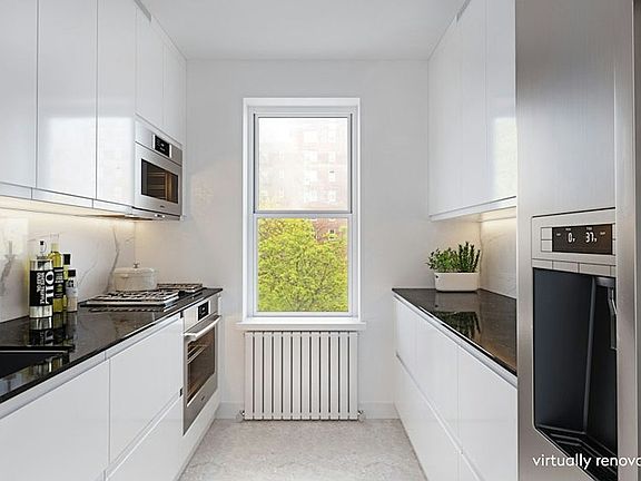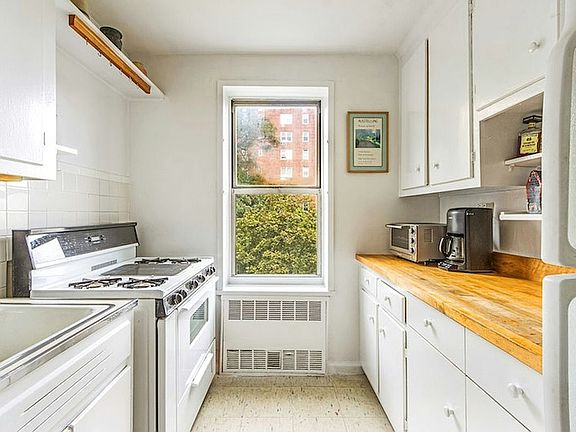 The co-op has a part-time lobby attendant, Butterfly intercom system, live-in super with additional porter staff, fitness room, storage cages, bike storage, garage (spaces individually owned), laundry room and a private playground accessed through the building. It is a very convenient location, with nearby public transportation (A express subway line and buses) as well as great shopping and restaurants nearby. Sorry, no dogs allowed.