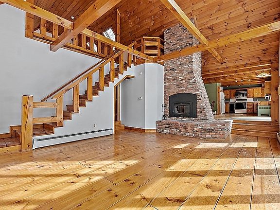 Year Round Post & Beam Contemporary with beach, boat, and water access to Packard Pond offering room to roam for everyone. This home has 3 large bedrooms, 3 baths, large living room, dining room, laundry/mud room, large loft area, partially finished basement, and beautiful outdoor space. Rustic wide pine flooring in almost every room add to the charm of this home. Recent improvements include heating system, electrical system, septic, well, roof, and owned solar array. The private Packard Pond association beach is right across the street from this home so summer fun is just around the corner. This home has an oversized 2 car garage with storage & workshop area and also has a 30amp plug for electric car (buyer responsible for charger). In all seasons this home is adventure around every corner so bring your kayaks, fishing gear, bathing suits, bikes, water-skis, cross country skis, snow shoes, and hiking boots when you move in.