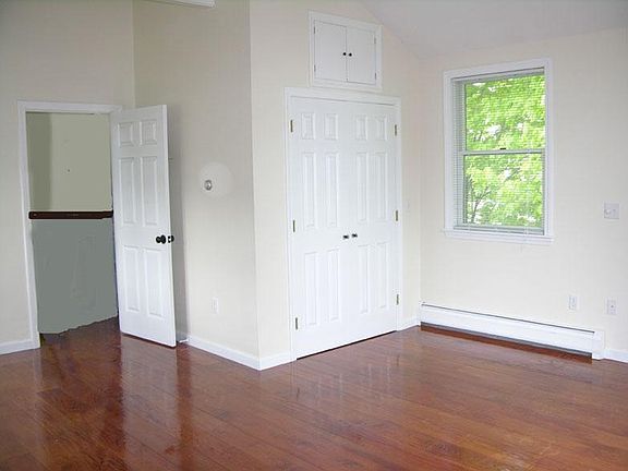 Waterfront two bedroom townhouse with yard and off street parking. Beautiful wood floors throughout. Kitchen has corian and granite counter tops, stove with self-cleaning oven, full refrigerator, and pantry. Large master bedroom upstairs overlooking the river with ample room for a home office. Second bedroom also good sized. Bath has a whirlpool bath/shower combination, pedestal sink and closet for towels, etc. Back deck overlooking river. Basement with washer/dryer hookups and storage space. This house is the backside of a duplex. Grassy backyard. Owner pays for water and sewer