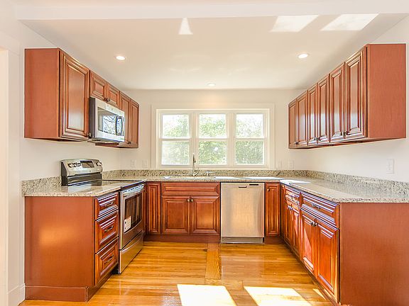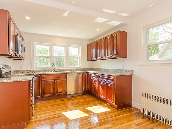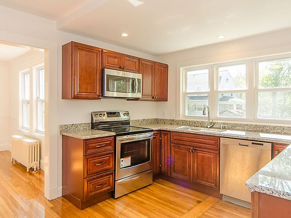 Classic three bedroom side entrance colonial located minutes from the Brookline line. New eat-in kitchen and bath, freshly painted interior, gleaming hardwood floors, updated windows. Potential second floor deck, one car garage, walk up attic. Conveniently located with easy access to the Longwood medical area, commuter rail to South Station, and bus to Forest Hills and Cleveland Circle. Near the shops and restaurants on Centre St. and the Village shops at Hancock Village. It's hard to a find beautiful single family colonial house that is Brookline adjacent with completely updated and modern appliances, including a completely renovated bathroom and kitchen. The modern kitchen includes granite countertops, a brand new stovetop, dishwasher and built in microwave oven. The house also has refinished hardwood floors and a 1 car garage. The walkout basement, private backyard, and newly paved driveway provide plenty of space for entertaining, for kids to play, and for gardening. There is also a welcoming fireplace in the living room with an adjacent bright sunroom. This house has three bedrooms and one full bathroom. There's also a walkup attic for additional storage space and plenty of space as well in the basement which includes a complete washer/dryer set. For a private house tour, please text or call me at 617-435-6318, or email: zuncaiwang@hotmail.com