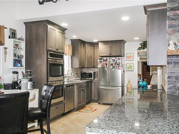 Fabulous remodeled and updated 4 bedroom home with remodeled large eat-in kitchen with granite and stainless steel appliances. Kitchen opens to cathedral ceiling family room with beautiful floor to ceiling fireplace. Formal dining room has vaulted ceiling and skylights. Second family room,/formal living room also has hardwood floors and vaulted ceilings with skylights. This home also features a master bedroom suite with hardwood floors, full bath, walk in closet as so much more. 3 additional bedrooms 1 ensuite and full hall bath. Huge laundry room, foyer and mudroom, The lower level features a wonderful media room and play room.