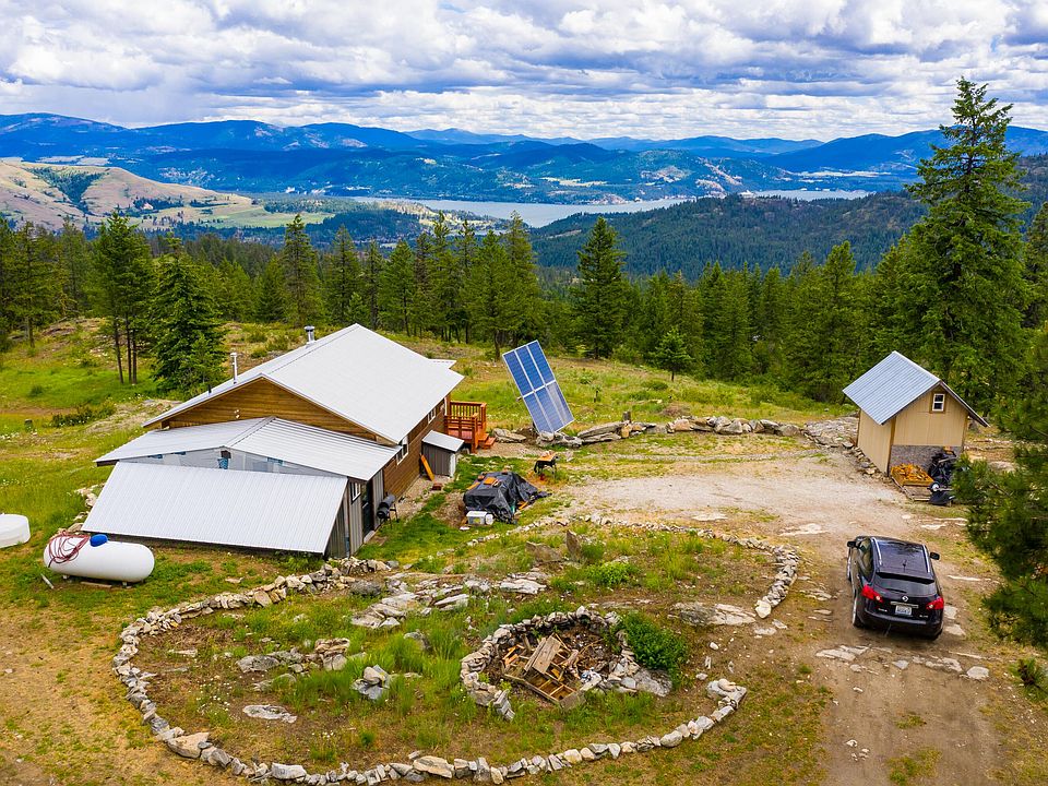The ultimate off grid property! The views are simply stunning. So is the custom built 1BR/1BA 600 sq. ft home run completely off solar power. The craftsmanship is amazing; Cedar lined walls, vaulted ceilings, tile counter, tiled BA floor, propane stove, fridge & furnace, wood stove, beautiful wood floors, insulated sun room w/views to the Kettle River & Lake Roosevelt. There is a 1200-gallon water storage tank & 2-bedroom septic. 100-amp service provides power for the home & 10 x 22 workshop on back of house. Relax in the separate 8 x 12 Cedar Sauna. Have guests stay in one of three guest cabins on the property. Two of which have their own wood stoves to keep warm & cozy in winter. The 20-acre Property borders Colville National Forest. Come experience a truly special property.