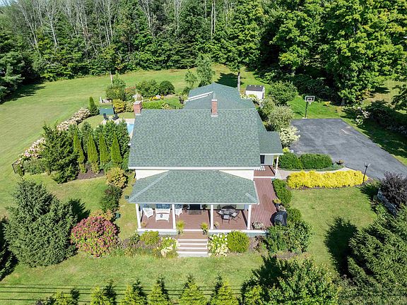 Seller encourages back up showings/offers. Fantastic opportunity to own a fully renovated antique home in Meredith, NH on a gorgeous 1.6-acre lot. The front of the home is currently used as a short term rental unit with it's own entrance. It includes a bedroom, 2 baths, 2 other sleeping areas and a spacious eat-in kitchen and living room. Enter into the main part of the home and enjoy an updated farmhouse feel with beautiful hardwood floors. The dining room leads to a bright sun room and the updated kitchen with granite counters and plenty of storage. Off the kitchen is a large living room with a fireplace. Next to this is a first floor bedroom. The second story of the main home includes a bedroom and primary suite with a gorgeous updated bathroom, sitting area with fireplace and a walk in closet. Downstairs is a ready to finish lower level with plenty of storage space or extra living space with rough plumbing for another bathroom. The sun room opens to the incredible back yard area with a hot tub and in-ground pool with a beautiful patio area, fire pit and large level lawn. Perfect for entertaining and even having a wedding. Enjoy bountiful sunshine on this lot, and plenty of parking in the paved driveway. This incredible property is "on the right side of the lights" offering ideal access to all points; I93, downtown Meredith, area lakes, shopping, and more.