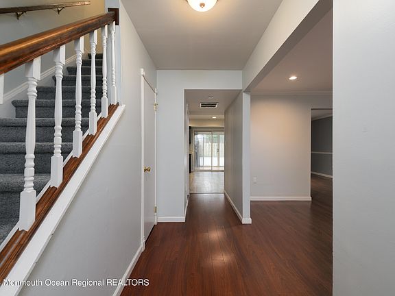 This charming Society Hill townhome offers a perfect blend of comfort and elegance with its two spacious bedrooms, each featuring an ensuite bathroom. The second level boasts new carpeting, adding a cozy feel to the home. The living room is a welcoming space with a fireplace and built-in shelves, all accentuated by elegant crown molding. The kitchen is a chef's delight with granite countertops and stainless steel appliances, and the dining room, also adorned with crown molding, is perfect for hosting. A sunlit sunroom leads out to a huge deck, complete with built-in benches, ideal for outdoor relaxation or entertaining. Residents also enjoy a range of community amenities including a pool