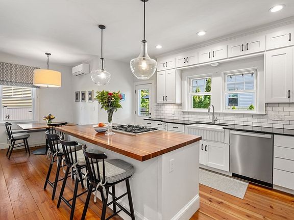 This mansard victorian single-family home in the heart of Jamaica Plain offers historic charm and modern updates. Just blocks from Jamaica Pond and Centre Street, and one mile from Longwood Medical Center, the location is prime. The first level features a fully remodeled kitchen with an eat-in nook, oversized island with wooden countertops, and a pantry. The first floor also has a generously sized living and dining room. The second level includes four spacious bedrooms, a full bathroom, and laundry. The third level offers a luxurious primary suite with a remodeled bathroom and walk-in closet, plus two bonus rooms perfect for home offices or a gym. The detached brick garage is an added bonus at the end of the driveway that can accommodate three vehicles. The backyard features a natural gas fire pit and grill. Modernized over time with updates including new bathrooms, plumbing, electric, boiler, and an addition creating two more bedrooms. Close to all that JP has to offer!