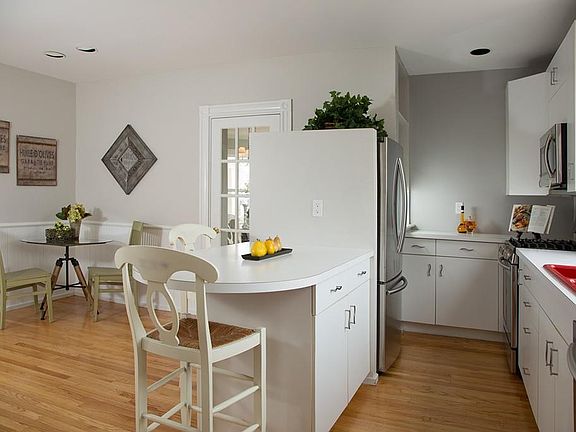 This spacious and charming, sun-filled West Newton farmhouse with wraparound porch sits on a lovely 10,200 sq. ft. lot. The property includes many updates: refinished floors, tiled baths, freshly painted interior, deck, and siding (2010). A welcoming foyer leads to a living room with pocket doors,dentil molding and gas fireplace. The dining room has a built-in china cabinet and access to the rear deck & backyard. The kitchen features updated appliances and a French door which leads to the side mud room. Four nicely proportioned rooms are on the second floor, one having laundry hook ups for stackers in its closet. Three additional rooms are on the third floor -- one is heated, and one has a captive room off it. A two-car garage has a lift for a third car. This home is close to public transportation, shops and major routes. Please note property is in 02465 zip code not 02459. Follow GPS to West Newton.