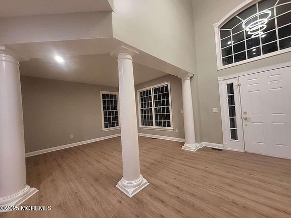 As you arrive you are greeted by this Modern Home nestled on a Cul-De-Sac situated on nearly an acre. Rejoice, as you are greeted by a stunning front atrium & cathedral ceilings. Entering further, you'll find stunning LEDs & pendants throughout, a beautiful tiled kitchen with backsplash, a professional 36'' range, pot filler, farmhouse sink, & stunning Calacatta surfaces w/ waterfall island. Within, you'll find 5 spacious bedrooms; a master bed w/ his & her closets & attached office; multiple tiled water closets w/ Calacatta counters; spacious closets throughout; a jetted jacuzzi w/ new double hot water heaters & brushed gold fixtures throughout. Looking to the rear, you'll find a large beautiful private backyard with copious space adjourning the tranquil woods. Additionally, you'll find an oversized triple car garage, ample driveway parking, plentiful storage space, his & her sinks, a washer/dryer room & new two zone environmentally friendly 96% ultra high efficiency HVAC system.