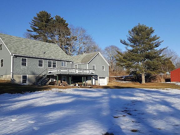 This 1 story cape, built in 1969, is a very solid, but outdated home. It features 2 bedrooms with generous closets on the second floor, and on the first floor, an eat-in country kitchen, a livingroom with a fireplace, a library, a first floor master bedroom, and a full bathroom. The house has a 2 bay garage with storage above and below, attached via an enclosed breezeway, and an unfinished walk-out basement with a random toilet and no sink. Every floor in the house is carpeted including the bathroom, kitchen and breezeway, and there is plenty of 70s sheet wood paneling to go around. The southerly side of the house has a large deck overlooking pasture and about a dozen bird houses. There is a pole barn and workshop on premise as well. Perfect for a small farm.