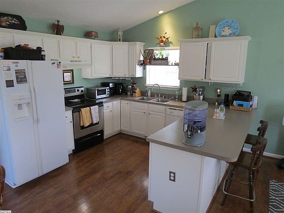 - Kitchen Cabinets/Counters: Formica Counter, White Cabinets