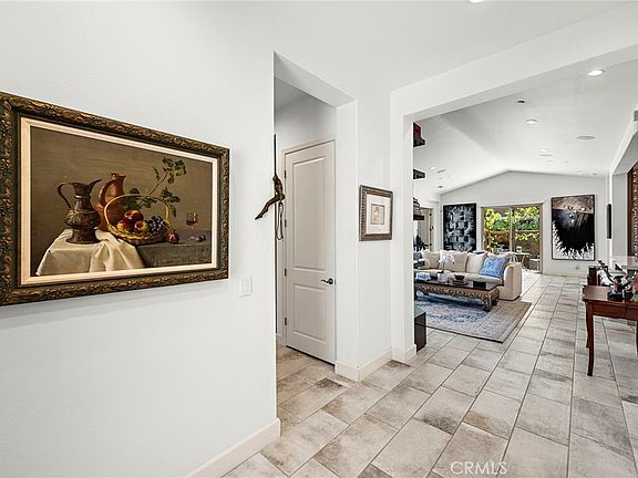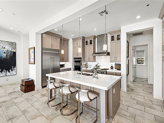 Welcome to this exquisite 55+ property in the coveted Rancho Mission Viejo community. This elegant home offers 2 bedroom suites flanking either side of the property, each with its own highly upgraded bath , a large library/den and powder bath for guests within its expansive 1864 square feet of living space, set on a generous lot. Upon entering, you are greeted by a sense of luxury with an abundance of natural light and stunning views that permeate the residence. The interior boasts an array of lavish upgrades, including the finest finishes and meticulous attention to detail throughout. Quartz countertops, striking white basketweave tile backspalsh, rich dove gray shaker cabinetry with 3rd row of cabinets to the ceiling and 42" built-in refrigerator create a beautiful yet functional space for experienced chefs or for plating take-out! Open floorplan with cathedral ceilings, porcelain tile floors and custom modern media walls in great room and library with shelving for showcasing treasures from a life of travels and experiences. The focal point of the home is the seamless integration of indoor and outdoor living, made possible by the magnificent stacking glass panel doors that lead to the outdoor oasis. The outdoor space is an entertainer's delight, featuring an impressive outdoor kitchen with oversized grill and chimney hood, granite countertops, beverage refigerator, stainless sink and custom cabinetry. Meander out to the rest of the yard with the inviting hot springs spa built-in with deck surround featuring a stairway with modern railing, and a linear firepit with built-in seating with custom cushions - perfect for hosting gatherings or enjoying tranquil moments while admiring the breathtaking views. The primary suite provides a serene retreat, complete with built in media wall and a spa-like ensuite bathroom boasting a step-in shower, dual sink quartz vanity and oversized closet with custom built-ins and dressers. The secondary bedroom offers privacy for guests with an ensuite bathroom with large shower, walk-in closet with built-ins and plush carpeting. Library Den is open to the dining room and provides a convenient office space or tv room. The garage is an extension of the home with epoxy, extensive cabinets and owned Solar. This remarkable property embodies the epitome of sophisticated 55+ living, where luxury, comfort, and panoramic views converge to create an unparalleled living experience. Come make this exceptional residence your own.