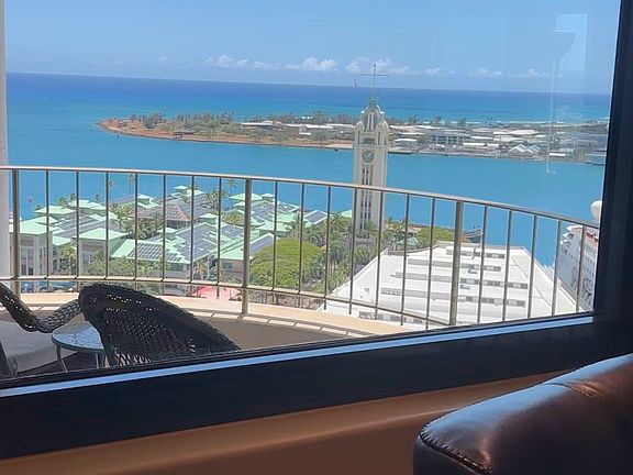 Harbor Court: one of Hawaii's important architectural pieces. Beautiful ocean and Aloha Tower view -- glorious sunsets -- from 150 sq ft lanai and additional lanai off of bedroom. Gorgeous end unit. Amazing kitchen. Fully furnished - all included Fabulous location. Located in the heart of downtown with all the conveniences of urban living - walking distance to CBD, restaurants and coffee shops, Chinatown shopping, etc. Spacious 2 bedroom, 2 bathroom suites, 1500 sq ft, , central air conditioning, 2 assigned, covered parking spaces (tandem). End unit with 2 lanais and amazing views. Subzero fridge and upgraded appliances. Additional built in wine Top amenities - infinity pool, jacuzzi, gym, conference room, grills, 24 hour security. Available from June 15. Air conditioning, electric and cable billed separately. GET transient tax due if rental is for less than 6 months