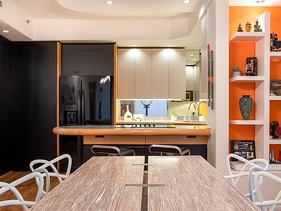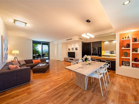 An urban oasis in downtown Honolulu's Harbor Court,1405 is truly spectacular. Located on the only floor with 9-foot ceilings, this elegant residence was thoughtfully designed with two master suites and expansive living areas that open directly to the private lanai that is enclave to garden in while taking in views of Honolulu Harbor and beyond. This end-unit has its own private foyer, open kitchen with new appliances, central AC and more. Celebrated for its architecture, the award-winning building by Norman Lacayo includes a dramatic high-ceiling entry experience with art-deco details, rotunda, fountains, heated infinity edge saline swimming pool, whirlpool, etc. Pet friendly building includes full-time security and on-site management. Please use Showing Time for showing requests.