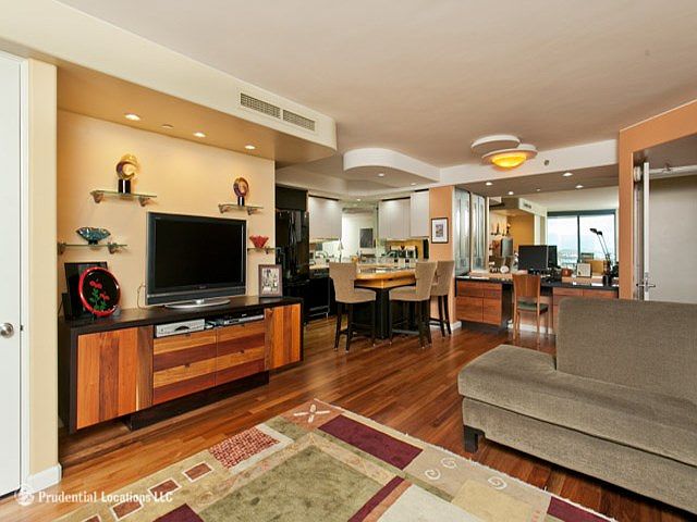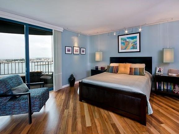 Captivating Harbor Views from rarely available "04" unit! Former model unit is rich in designer detail, décor and tastefully upgraded throughout! Koala hardwood floors, designer lighting, built-ins, storage, more! Pet friendly. Building is beautiful, well managed! 1 parking with storage convenient downtown location. Resort Amenities, 24/7 security. Immaculate!