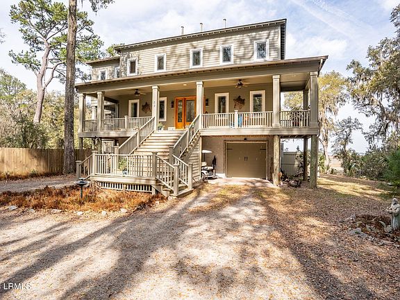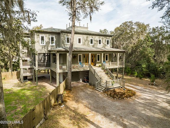 This Lowcountry property has it all – a gorgeous, exquisite Steve Walker home custom designed for its jaw-dropping setting on three acres of marshfront property overlooking 300,000 acres of the ACE Basin wildlife refuge, yet conveniently located on Lady's Island. Set on the Coosaw River and the Intracoastal Waterway (ICW), the house sits nestled by hundreds of acres of protected green space. Every room boasts dazzling sunset views of magnificent centurion oaks and sweeping salt marsh vistas. And the home itself spares no attention to detail. Built in 2009 by Steve Walker and Island Residential Construction, it offers a wealth of high-end finishes including wide-plank Southern yellow pine floors, 10-ft ceilings, and spectacular windows and doors. ADA compliant and Energy Star certified , the house has a hydraulic elevator serving all three floors, nearly whole house generator, tempered hurricane glass throughout, and hospital-grade spa tub. All doorways and hallways are wheelchair accessible and feature pocket doors. Downstairs, a lovely laddered library with beautiful tin ceiling adjoins a spacious screened porch. Indoor and outdoor living space flows seamlessly throughout the home thanks to meticulous design and a reverse floor plan that makes the home's expansive views even more remarkable. With more than 2,400 sq ft of exterior porches and decks, birds and wildlife will feel like your new best friends. This property is a world apart yet just minutes from "civilization" downtown Beaufort and all the restaurants, shopping, golf, public beaches, and more this historic area offers. It's also just a hop, skip, and a jump to the Forrest Gump dock and Lucy Creek public boat landing, or 40 minutes to Hunting Island State Park. Located in the highly sought-after Coosa Elementary School District.