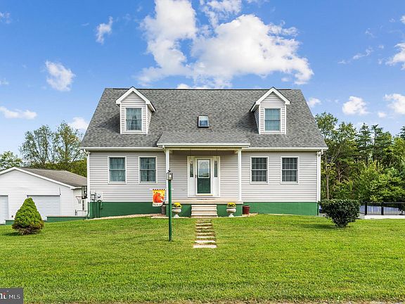 Don’t miss out on a Fantastic opportunity on this large, well maintained Cape Cod Home! Boasting over 2100 finished square feet of living space and an unfinished walk out basement with unlimited possibilities. From the covered front porch, you are greeted with an expansive entry foyer and beautiful hardwood flooring. Also on this level are the Formal Dining with bay window and Living Rooms, Primary Bedroom with Private Bath and a enormous Country Kitchen with eat in area, oak and glass front cabinetry, luxury vinyl plank flooring, deck access to mountain views and even a pellet stove for ambiance. Ascend the hardwood staircase to the spacious upstairs and find two additional large bedrooms and a third bedroom which would make a great in-home office. The unfinished basement has a two-car garage and plenty of room or storage, work areas or additional future finished space. Outside you will find a two-car detached garage, paved driveway, partially fenced back yard and an inviting above ground pool with deck area. This is a truly unique home and is waiting for you!