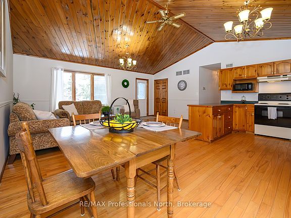 Welcome to small-town living with big lifestyle appeal! This beautifully appointed 4 bedroom in downtown Kearney offers space, warmth and endless possibilities with nearly 2200 sq ft of finished living space. Inside, rich wood accents and solid wood doors, create a timeless, welcoming feel. The open-concept kitchen, dining and living room area with vaulted ceiling is the heart of the home-bright, functional, and designed for connection, whether you're hosting friends or enjoying quiet family time. The fully finished lower level features a spacious family room anchored by cozy gas stove, making it the perfect entertaining hub. With its layout, this level could also easily transform into an in-law suite or accessory apartment adding flexibility and future value. Oversized garage with mezzanine, allows for vehicles and toys, or workshop. Certified R2000 home with low carrying costs. Wired for generator. Fully-screened front porch for enjoying those gorgeous evenings. Step outside and enjoy the freedom of an oversized one-acre lot offering privacy, room to play, garden, or simply relax. Perfectly positioned as the gateway to Algonquin Park, Kearney provides unmatched access to nature with three park entry points known for its swimming, motorsports, camping and fishing with many local lakes, plus snowmobiling and ATV'ing, hiking, paddling and hunting. All of this while being walkable to the beach, community centre, library, church, LCBO, restaurants and local shops. Just 25 minutes to Huntsville. This town is slowly growing into a vibrant community community with popular firework displays, annual waterfront regattas and iconic dog sled races and waterskiing championships. Whether you are looking to raise a family, retire in comfort or invest in a lifestyle-rich community, this home delivers the perfect balance of space, warmth, and location. A space to settle in, and truly belong. Full pre-listing inspection has been done and available to interested buyers!