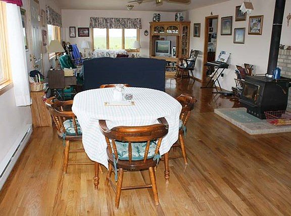 Secluded horse property with amazing views! Cozy, country, 3 bed, 2 bath home is super efficient in design and energy consumption featuring: walk-in closets, hardwood floors, and hickory cabinets. Oversized, attached 2 car garage has lots of storage and work space. Low maintenance xeriscape landscaping. Two irrigated acres are currently in hay production.
