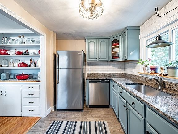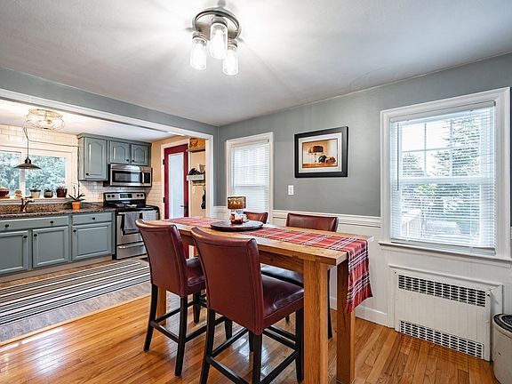 Come check out this cozy cape style home offering three bedrooms, one and a half bathrooms, and over 1,200 sqft not including the finished walk out basement! As you walk in the front door you will enter into the living room with hardwood flooring and a beautiful fireplace to snuggle up to as winter approaches! The kitchen has been updated with newer countertops, flooring, and stainless steel appliances. The kitchen has a great flow that is open up to a smaller dining area with gorgeous built-ins that bring in so much character. In addition, there is a formal dining room as well that can easily be converted back to a true bedroom depending on your needs. The second floor can be used as one big master suite or two separate areas, perfect for a nursery or a home office! This home has been very well maintained with many updates over the years. Some of those updates include a newer roof, windows, hot water tank, mini splits, oil furnace, carpet, driveway and much more!
