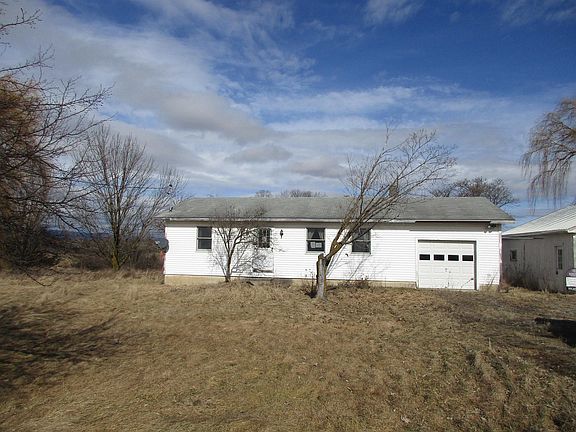 Rural ranch home in Bridport, VT featuring mountain views, a small orchard, and a large detached 2 car garage. This home is off Route 2A in Bridport and features Adirondack views. There is a one car garage attached to the home as well as a large detached 2 car garage. The home has a few apple trees in the back of the home and is in a rural country location. Inside you will find a Kitchen and dining room in an L shape. As well as a living room. Then two bedrooms that are both close to a full bathroom. Seller and agency have no knowledge of systems, buyer responsible to verify all data, to be sold AS-IS.