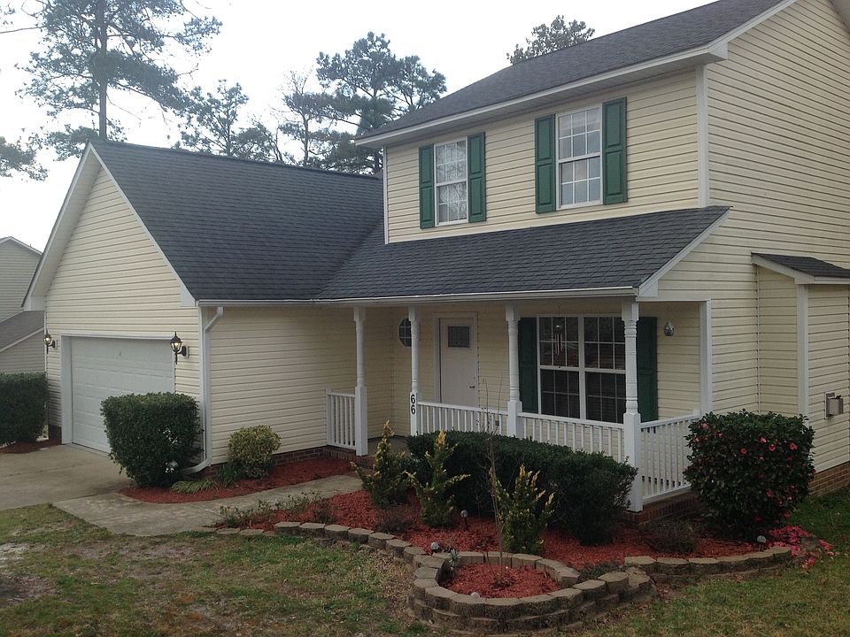 Check out virtual tour button below or copy and past the following in your internet browser:----- http://www.zillow.com/homedetails/66-Ribbon-Oak-Ct-Sanford-NC-27332/71876280_zpid/?view=public ----- How to by a home directly from the owner: http://www.forsalebyowner.com/real-estate-help/buying-a-house/home-search/find-a-real-estate-agent/buy-home-directly-owner/ Lived in this neighborhood for 8 years and LOVE IT!!! Moved to be closer to work. Shopping center within walking distance, Low property taxes, Elementary and new middle school less than one mile away. Peach Tree Crossing is one of the most desired Neighborhoods in the area, well maintained home is perfect for family. Open house noon to 4 pm Sunday. Seller to cover $3000.00 buyer closing costs, $2200 carpet allowance (because carpet warranty isn't transferrable), and first year home warranty up to $600.00!! Interior freshly painted! Finished two car garage with cable t.v. access, work cabinets and enclosed wall storage. MASTER BEDROOM IS DOWNSTAIRS! This floor plan is rare in the area and allows for large upstairs bedrooms. Bonus room 15 X 21 ft; Bedroom one 12 X 15 ft; Bedroom two 11 X 12 ft; Master 15 X 12 ft; dining room 12 X 10 ft. Upgraded floors throughout. Two Large decks, one with built in seating and electrical to support hot tub. 12 X 12 Shed, great for storage. Large lot is wooded and private, also fully fenced. New over the range microwave, new range, new exterior doors, new toilet and faucet in master bath, new ceiling fan in living room, bedroom two and three. New “whole house” fire detection system, New security system that connects to cell phone, freshly painted from porch, refinished deck, refinished oak cabinets. Motivated seller! Contact edferch@gmail.com or call 919-352-6629.