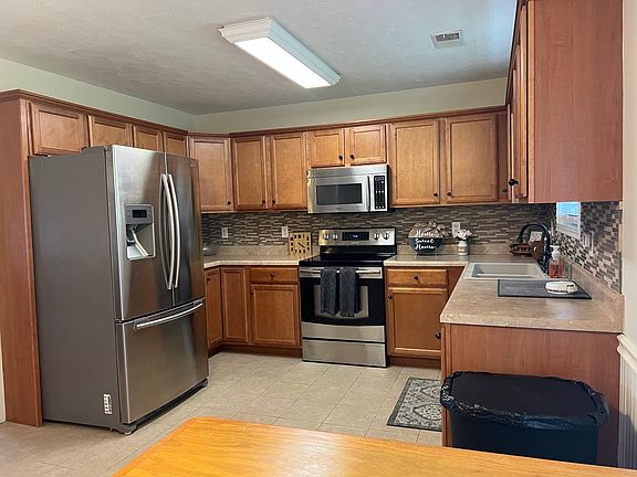 Move-in ready three bedroom two bath ranch home with a two car garage and a great back deck and yard to enjoy!! Spacious laundry room! Sellers have put in new tile in laundry room, entry, kitchen, bathrooms, and hall closets. New blinds, new paint, and metal roof on out building!