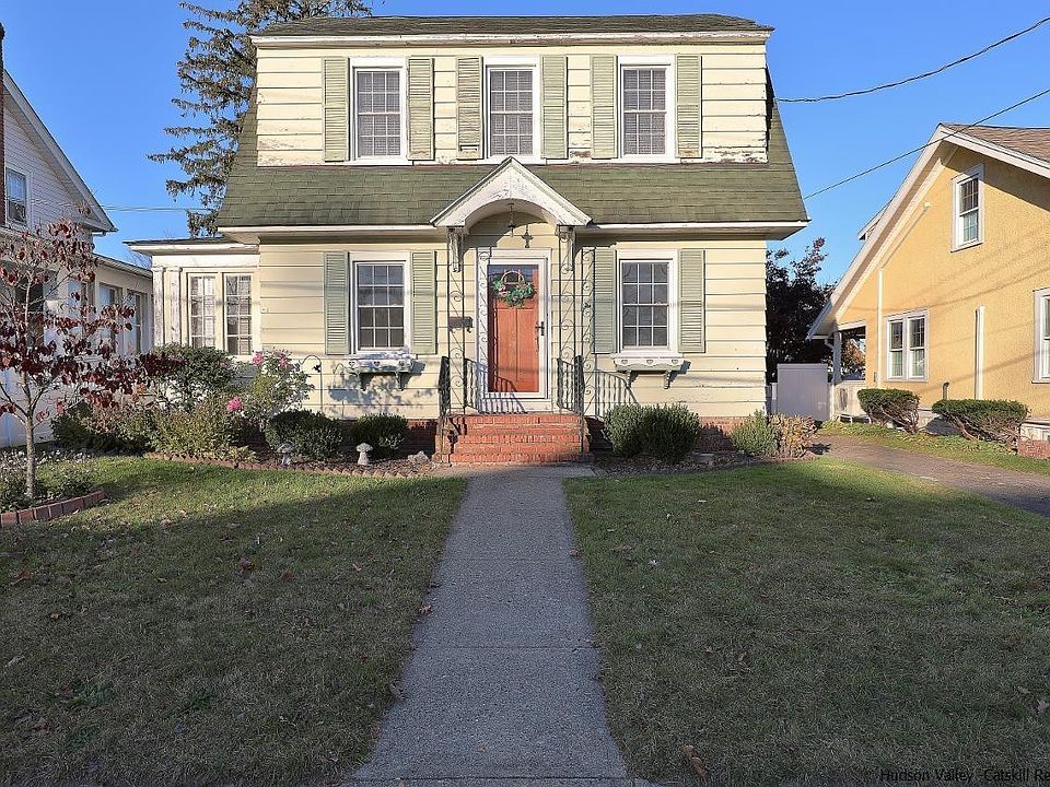 Location, location, location! Charming and well cared for cape awaits its new owner. Home has the perfect flow we are all looking for in a lovely, desirable neighborhood. Step inside to the first floor that welcomes you with a bright and airy living room leading into the spacious eat in kitchen with tons of cabinet space and dining area. Hardwood floors, original woodwork and French doors are a few favorites of this home. Off the living room is a cozy room full of windows ideal for peace and relaxation. Elevate to the second level that features three bedrooms and one full bath. Each room is nicely sized with closet space and an abundance of sunlight. Basement is unfinished which allows for storage along with a walk-up attic with additional storage. The yard is fenced in offering privacy and plenty of space for summer BBQ's and family gatherings. There is detached one car garage with off street parking. Municipal sewer, water and natural gas call for easy living! Property is nicely landscaped with hydrangeas and adorable window flower boxes . Home is conveniently located just minutes to NYS thruway, hot spot Uptown Stockade District, Downtown Waterfront & just under 2 hours from NYC. Won't last long, come see for yourself!