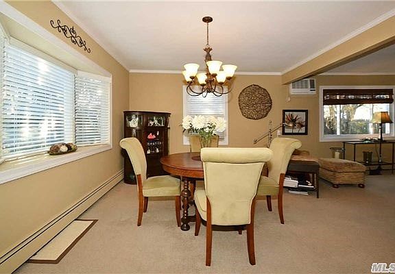 Pride of Ownership describes this beautiful 3 Bedroom cape. This meticulous home features: living room, formal dining room, eat in kitchen with granite countertops, backsplash, updated appliances, porcelain floor tiles, high hats and a stainless sink, new bath, French doors into an oversized master bedroom on the main level with triple closets, raised panel doors, custom blinds, large laundry room with cabinets and countertops, architectural roof, vinyl siding, vinyl fenced yard, in ground sprinklers, deck, brick patio, large shed attached to house, all situated on a professionally landscaped property. Prime location, close to all and is located in desirable Island Trees School District.