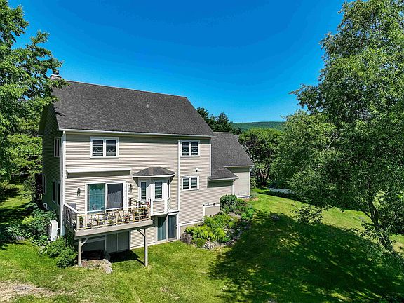 Welcome to 66 South Harvey Farm Road! Before you even arrive, you can't help but notice the lovely "house on the hill" overlooking the Pond. Upon entering, you will be wowed by the unobstructed view of Camel's Hump, the pond, and the lush meadows. You will love the simple and elegant design enhanced by natural light, with an open floor plan and stunning wood floors gracing the first level. Make your way to the inviting, spacious living room with wood-burning fireplace, formal dining room, breakfast/reading nook, and well-appointed kitchen. The deck offers front row seating to the surrounding landscape, featuring starry nights, snow-capped mountains, and spectacular sunsets. The second floor features a primary suite with double closets and bath with jetted tub and double vanity. The bonus room is perfect for a home office, playroom, or hobby area. The walkout lower level has the potential to be finished and could be plumbed for an additional bath. Updates to enhance this home's comfort include the addition of heat pumps, a new boiler, water heater, interior paint, lighting fixtures, and carpeting. Perhaps best of all, this lot has coveted direct access to the Harvey Farm walking trails, from which you can access 140 shared acres, rolling meadows, delightful woods, the pond, and magnificent views. This lot enjoys the feeling of a much larger parcel with this unique and stunning common land. Close to I89, downtown Waterbury, Stowe, Burlington, Montpelier, skiing and biking.