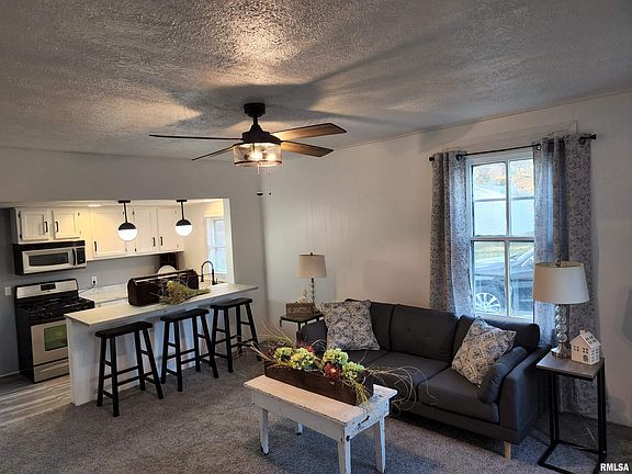 Enjoy this historical home that has been totally renovated and feels like a new home inside. The living room opens up into the kitchen with a breakfast bar. Home has 2 nice sized bedrooms and a large, updated bathroom with a corner glass shower with a rain shower head and main floor laundry area. New Roof!! Enjoy sitting on the deck and relaxing. This home also has a nice large yard. Come see this house and make it your home! Enjoy small town living in Farmington but easy access to Peoria, Galesburg, Canton and much more. The owner is just finishing up a few items in the home. Stainless steel appliances in the kitchen, they work fine but not warranted. At this price you would have very reasonable monthly payments, cheaper than renting! **Just Reduced!! Home is like new inside, new roof and everything working but since being sold at cost, no additional repairs will be made.