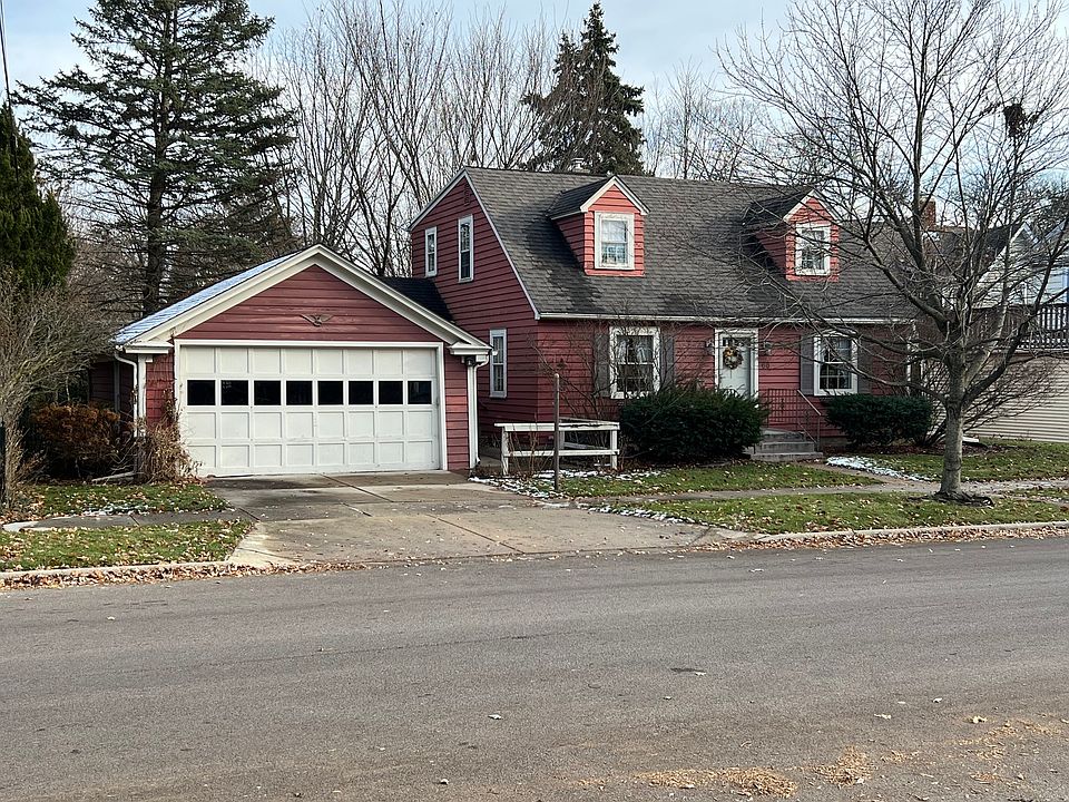 Charming and quaint Cape Cod cottage features hardwood flooring on both floors. There is a den/parlor sitting area adjacent to the large living room with large entry way. One bedroom is on main level down stairs. It features built-in cabinets and drawers in addition to a closet. Larger bedroom upstairs features a nook/sitting area. Basement has many possibilities. Basement is tiled throughout and has large utility room with washer and dreyer hookup, an oversized laundry tub and a work bench area. There is a half bath with shower, there are two storage rooms, spare room/office and a large room for whatever you need; crafts, hobbies, playroom or possibility another bedroom. Oversized garage is 32 feet deep and offers a workshop area. House is being offered "AS IS". Seller is related to realtor.