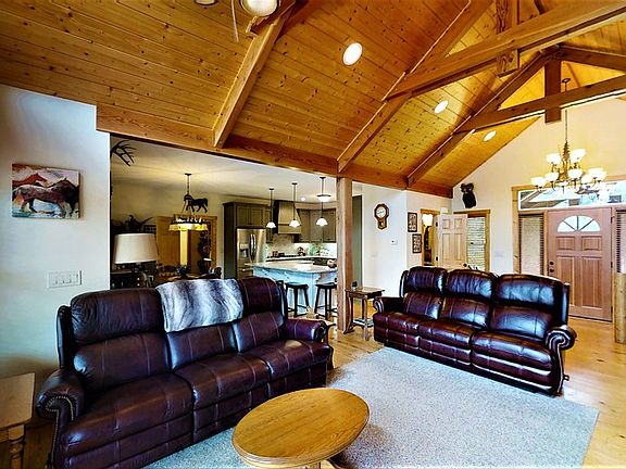 Custom Home built on 9.95 acres (fenced and cross-fenced) in a quiet, safe Community embraced by dense woodlands, rolling hills, covered bridges, green pastures, Horse Trails, Lakes, and creeks. This is the perfect place for lovers of sunsets, horses, nature, fishing, kayaking and more. This property has it all. For the horses: 36 X 36 barn with 2 stalls, fenced paddock attached to barn and a fully fenced pasture with a large pond. For the family: a gorgeous 3 bedroom 2 1/2 bath home with spacious decking, a screened in porch, basement walk out which leads to a large patio complete with a fire pit, beautiful raised garden beds, garden shed, fruit trees, massive 36 X 40 separate building used as a recreation room with garage area equipped with heat/air and a 1/2 bath. The kitchen is made for the chef in you n you complete with gas stove, oven and convection/microwave oven, huge walk in pantry that connects to a large laundry room. Larger soaker tub and rain shower. Motivated