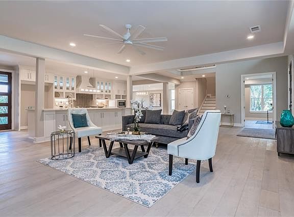 Rare find in sought after Rob Roy. Complete rebuild in 2018, only partial slab reused. Sleek finishes throughout. Gourmet kitchen. Massive island open to living for gatherings. Soaring ceilings, loaded w/ windows. Study, dining & master suite w/ lavishly fitted master bath on main floor. Spacious addt'l beds & game rm up. Large pool, cov'd veranda & outdoor kitchen, set against a private & heavily treed flat lot. 562 sq. ft. +/-guest quarters w/ private entrance hosts bedroom, bath, living & full kitchen.