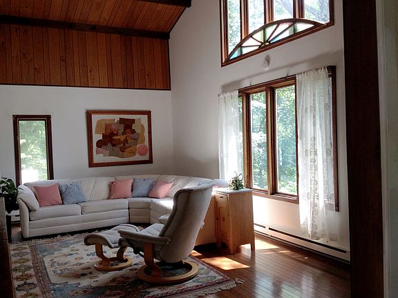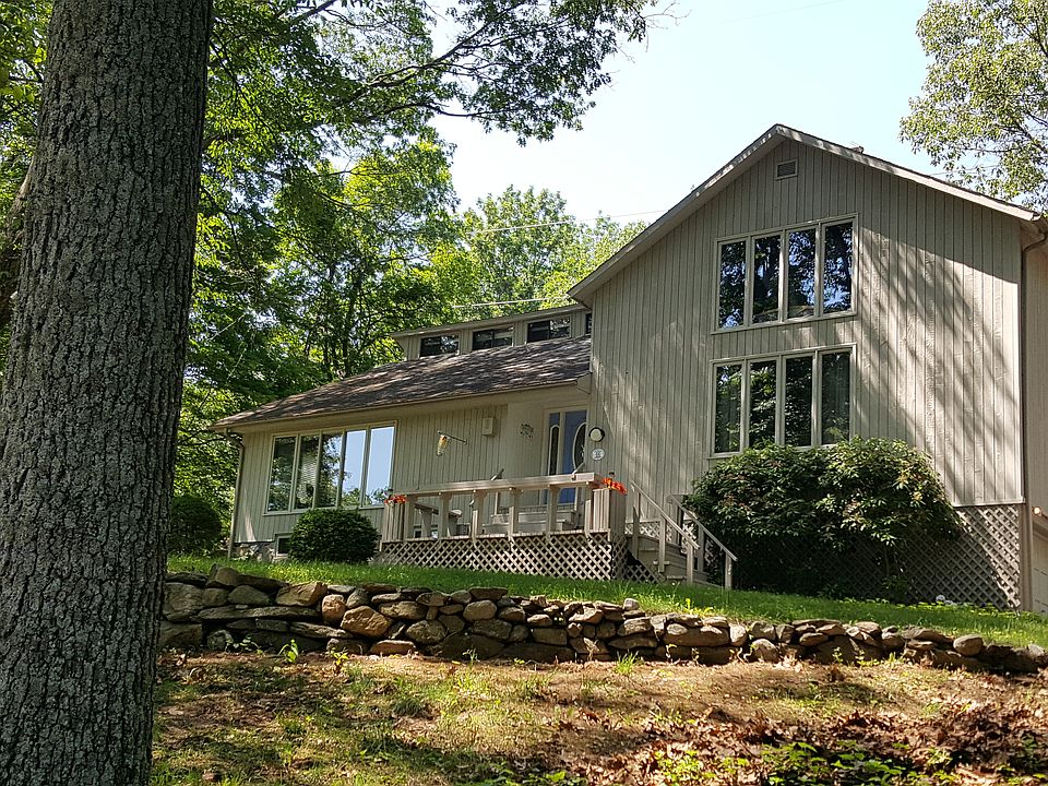Location. Location. Location. If you want to be 5 minutes from the center of Newtown, 15 minutes to Danbury, 35 minutes to Ridgefield or Westport, this 4 bedroom, 2.5 bathroom contemporary is in the perfect location. This property is also minutes from the local Dodgingtown markets, a private golf club and Ferris Acres Ice Cream Shop - What more can you ask for? This contemporary began as a cabin style home. It has the contemporary style advantages of large open two story spaces, skylights, floor to ceiling windows, angular ceilings and walls while also offering tucked away cozy spaces to retreat from your busy daily life. The home has a main floor master suite and two home office options with their separate entrances. The outdoor space is easily accessible from the kitchen sliders and is a park like setting with it's stone patio, lush gardens, rock walls and walkways. It would be great to start the day on the patio with a cup of coffee while gazing towards the pond across the street. This property offers amazing possibilities