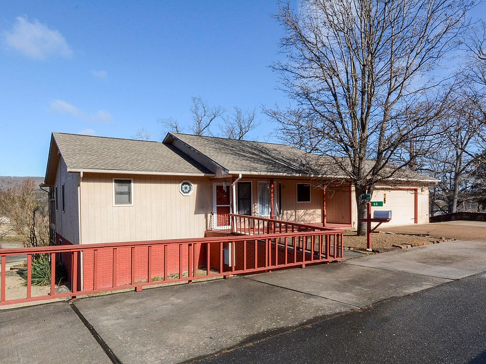 Located on the Island's 9 hole executive golf course. Enjoy the weather year round in one of the two glass sun rooms or cozy up to a warm fire in the living area. Features 3 bedrooms and 2 baths with the master on the main level. Want to do some fishing or boating? The marina is 1/2 mile down the road. Large family area downstairs and a bonus storage room off the bedroom. Winter peek-a- boo lake view of Table Rock Lake. Large deck with room to park your golf cart below.