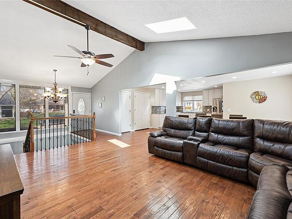 Beautiful Reverse Atrium, With Over 3000 Sq Ft Of Living Space, Updated From Top To Bottom, With Gleaming Hardwood Floors! Oversized three car driveway, meticulously kept! Lovely entrance leads to open floor plan with wood flooring throughout vaulted great room with skylight and flows into large breakfast room & kitchen! New kitchen has custom cabinets with granite counters! Main floor laundry has utility sink and more cabinets! Large master bedroom with double closet & private remodeled bath with walk in shower & whirlpool walk in tub plus skylight! Two other nice size bedrooms and 2nd full bath completes the main level! The finished walkout lower level has a family room with fireplace, two rec rooms one equipped with movie retractable screen and movie projector, 4th bedroom and 3rd full bath! Other upgrades include canned lighting, new worry-free deck, new roof 2022, new driveway, sidewalk plus huge patio!