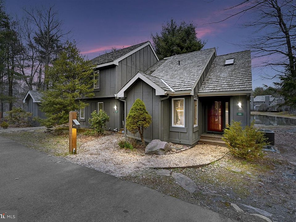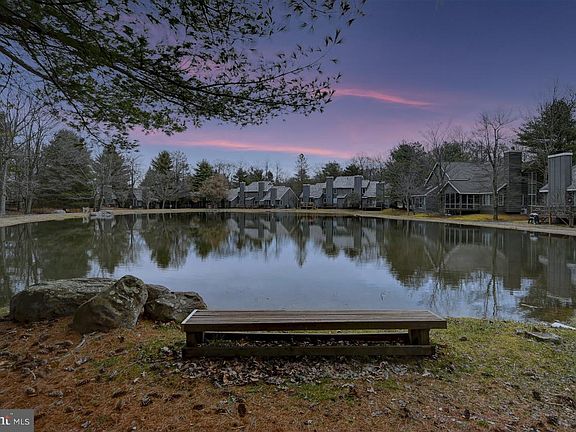 Spring has sprung and so has quite possibly the most EXQUISITE townhome in Snow Ridge Village. Your Pocono Mountain happy place has just hit the market and good golly, this one couldn't be better! So excited to tell YOU about ALL of the updates on this WATERFRONT home that have been made - a total kitchen renovation that gives you leathered GRANITE countertops with a spacious breakfast bar extension, main bathroom complete overhaul with WALK IN TILE shower, brand new HVAC installation, all new carpets & window treatments, relocated the washer & dryer from the kitchen to under the stairs which enables you to have more storage for pantry items. The level of thought, care and renovation on this 1 bedroom with sleeping loft home could not have been better and you will be the recipient of this owner's hard work. In addition to the bathroom on the main floor, a half bath is convenient in the loft for the upstairs guests. The vaulted ceilings and open concept living area is centered around a view of Mill Pond from the sliding glass deck doors as well as a pellet stove insert in the fireplace for an cozy extra heating source. Situated on the community's Mill Pond, this will give you relaxing views all year round from the spring, summer and fall with the cascading splash of the fountain to glorious winter and the majestic sight of a frozen pond. Whether this will be your private escape to the mountains or a short term rental, it's in the perfect location for you or your guests to enjoy. Owning a home in Snow Ridge gives you nearby slope access to Jack Frost Mountain and in the summer, owners have the benefit of joining the Boulder Lake Club to enjoy the 175 acre lake for swimming, boating and fishing plus a pool, tennis, playground and activities for the family. Your annual HOA dues includes water, sewer, trash, cable & internet plus more! Being in the heart of Lake Harmony and the Poconos, nearby you won't be short on things to do from summer festivals, whitewater rafting on the Lehigh River, biking & hiking on state park trails, Pocono Raceway, Jack Frost National Golf Course, visiting Historic Jim Thorpe and so much more. Come, take a look and have your breath taken away at 66 Snow Ridge Circle!