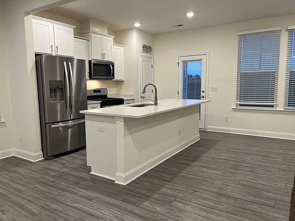 Welcome to this charming 3 bedroom, 2.5 bathroom end unit townhome located in Angier, NC. This cozy home has a beautiful open floorpan kitchen & living room combo w/fresh modern tones, quartz countertops, all stainless steel appliances, and washer and dryer provided! Durable easy maintenance LVP, new carpeting, and updated interior paint. Practical a single car garage and utility room perfect for parking and extra storage. Upkeep is a breeze with HOA provided lawn care! Enjoy the outdoors on you private back patio. Don't miss out on the opportunity to make this lovely house your new home.