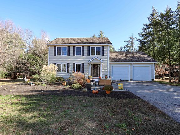 Welcome to Snowshoe Trail, a desirable and friendly neighborhood located in Contoocook Village, Hopkinton's business hub well known for its growth of small businesses. This inviting colonial sits on a quiet cul-de-sac with large level front and back yards on over an acre, with direct access to a state-maintained snowmobile trail, and beautifully landscaped perennial gardens with heirloom daylilies, irises, peonies, and more flowering plants. Entertain outdoors around the bbq and fire pit or indoors for game nights and holidays around your kitchen island and open dining area. Enjoy your morning coffee in the east facing sunroom, a nice space for a home office, which brings in an abundance of natural light and overlooks the peaceful backyard. The spacious and versatile finished lower level provides plenty of extra room. Updates such as brand new professionally installed flooring, a new glass slider and back garage door, trex decking, and fresh paint truly makes this home feel new. A brand new roof was just completed (after photos)! Stay protected from the elements with a nice 2 car attached garage. The house has been power washed and is ready for you to move right in! The working chicken coop has fresh hay, and is ready for a new flock. Hopkinton is known for its excellent schools and sports. The local gym and disc golf course are just 5 min away. Enjoy nearby recreational amenities like boating, swimming, hiking, and fishing at Elm Brook Park, part of Hopkinton-Everett Lakes.