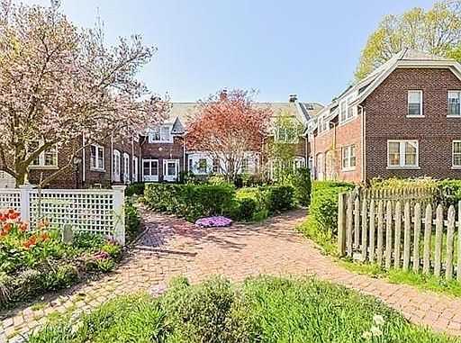 Welcome to Historic Woodbourne! Unique community of attached single family English Arts & Crafts brick cottages with large common park-like grounds and your own front yard as well as private patio, shed and grape arbor in back! So many details: 4 corner BR, lovely entry sunroom, sparkling floors, fp, pantry, wainscoting, replacement windows, updated bath, new heating, huge pull down attic, high ceiling basement gives opportunity for more space. Short hop to bus, Forest Hills and shops. Bring your cosmetic touch and make it yours!
