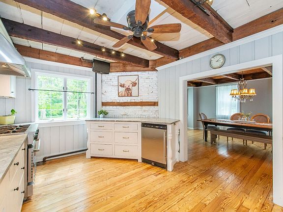 Suburban living with lots of old world charm. Well maintained with many modern updates- while preserving historic charm. 4 bedroom 2 updated bath home with country kitchen with SS appl, 6 burner Blue Star oven, granite counters. Wood floors through out 1st level. Formal dining room with beamed ceiling & lots of light. Living room with gas fireplace, breakfast area, sunken family room overlooking private backyard and laundry area complete the first floor. Four bedrooms, sitting room and full bath on 2nd level. Backyard perfect for entertaining with deck and two patio areas. Top rated schools. Easy access to NYC, highways and airport. Bus stop to NYC close to front door for easy commuting. Convenient shopping and dining. ROOF 2020, HWH 2019