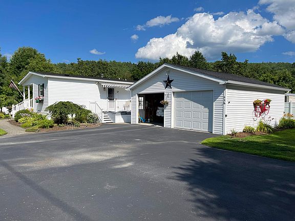 Open concept living room, dining area and kitchen. Plenty of cupboard space, island, built in desk with file drawers. Laundry off kitchen area including front loading washer and dryer. All appliances; stove, fridge, microwave, dishwasher along with central air conditioner included. There is three bedrooms and two baths . Queen bed in spare bedroom included as well as all blinds and window treatments. Front covered porch, side deck has retractable electric awning. Large paver stone patio for outside cooking area, leading to rear shed with lots of shelves for storage. The 2 car garage has shelves/ storage and both shed and garage is wired. Vinyl fence on two and half sides for privacy with beautiful perennial gardens. Has paved drive and turnout. Close to downtown, exit 7 on I91,Connecticut River, walking trails, biking ,Swan Common, town pool, Patch Park, Old Fort #4 .
