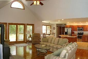 Open-concept contemporary home with access to Long Lake featuring cathedral/tray ceilings, hardwood/tile floors, master bath with jacuzzi tub and walk-in closet, bonus room with 1/2 bath, front and back farmers porches and heated garage. Association beach & dock on Long Lake nearby.