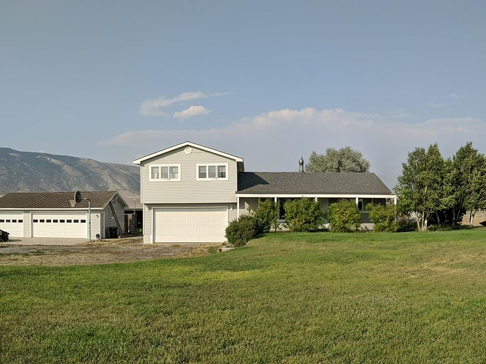 COUNTRY LIVING - Horse property w/Mountain Views on the Southfork that overlooks - 1.89 irr.ac. Bright & airy 3 bed/2 bath home with an open floor plan concept. Covered front porch, nice front/back yard on a sprinkler system(using well water)w/great mature trees for privacy, no-maintenance deck, Hot Tub. Horse set up: loafing shed/corral. Good size shop! Plenty of space for your toys & gear!