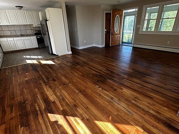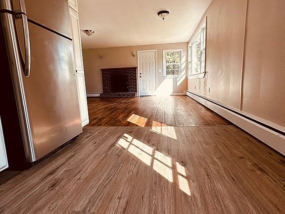 Set on nearly an acre of land, this home offers a tranquil setting with a big yard, perfect for those who love space and serenity. This adorable 3-bedroom ranch is nestled on a huge .92 acre lot, providing plenty of room for outdoor activities and expansion opportunities. The open floor plan fills the home with natural light, creating a bright and sunny atmosphere. Hardwood floors flow seamlessly throughout the living room, dining room, and bedrooms, adding an elegant touch to the space. The cozy living room features a wood fireplace, perfect for chilly evenings and creating a warm ambiance. Large windows in both the living room and dining room offer breathtaking views and invite abundant natural light inside. The kitchen opens to a large deck, where you can enjoy your morning coffee while overlooking the backyard. If you're searching for a home with a big yard and a tranquil setting, your search ends here! Don't miss out on the opportunity to make this home your own peaceful oasis.