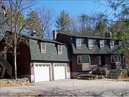 Listing agent: Chip Sutton, Call 603-845-2130 for information. Built in 1961 this distinctive Gambrel style home has much to offer. Located on a beautiful rolling wooded 2.26 acre lot set nicely back from the road it has a fabulous 32x40 detached two story barn in the rear with endless storage and many possible uses. Horses, cars, storage, etc. THIS IS NOT YOUR COOKIE CUTTER COLONIAL! Coming up the circular driveway your will notice the stone retaining walls and newly shingled roof. The two car attached garage has auto door openers and houses the oil fueled boiler (in set off room) a nice 5 zone Weil Mclain and electric hot water heater. Coming up the front steps you enter the slate floored foyer. To your right is the living room(14x28) with wide pine floor, brick hearth firplace with pellet stove, thick pine wall with built ins, exposed beams, bay window with window seat(storage below) and built in hutch. In the rear off the living room is the unique octagonal 4 season porch(about 330 sq. ft.) used as the family room. Windows all around make the room full of light and very comfortable. The anchor wall has diagonal pine paneling and is quite handsome. There is a ramp off the exterior of this room which takes you to the hot tub(negotiable) and rear yard. Great view of nature from this special room. The eat in kitchen(12x19) has ceramic tile floor, wood cabinets, center island with double porcelain sink and dishwasher. The flat top electric range is set in under a custom brick arch with large vent hood. There is also a double oven set in the brick wall. There is plenty of counterspace, a built in pantry, dinette area and refrigerator. Off the kitchen is the laundry/mudroom area with washer/dryer hookups and shelving. A little further takes you to the attached garage which has a second stairway to the basement. There is also a convenient half bath off the kitchen with tile floor, custom pine vanity and sink surround as well as a hand painted mural on the wall. The