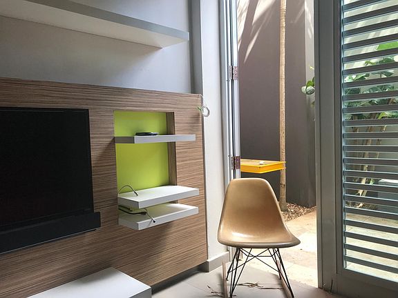 Fully furnished and equipped two bedroom apartment in a 3 unit gated boutique development 2 minutes walking distance to OP beach . 1 covered pkg. space w/ controlled access (additional available). Nested between the trendy Loiza Street District & Ocean Park Beach. Includes custom furnishings & high end appliances including washer/drier. 100% capacity emergency electric generator and cc camera surveillance system. Enjoy the trendy neighborhood as well as the finest urban beach in the Island. Cutting Edge Architectural Design, everything custom built. Renter pays for utilities. High speed internet ready. Last month's rent due at signing.